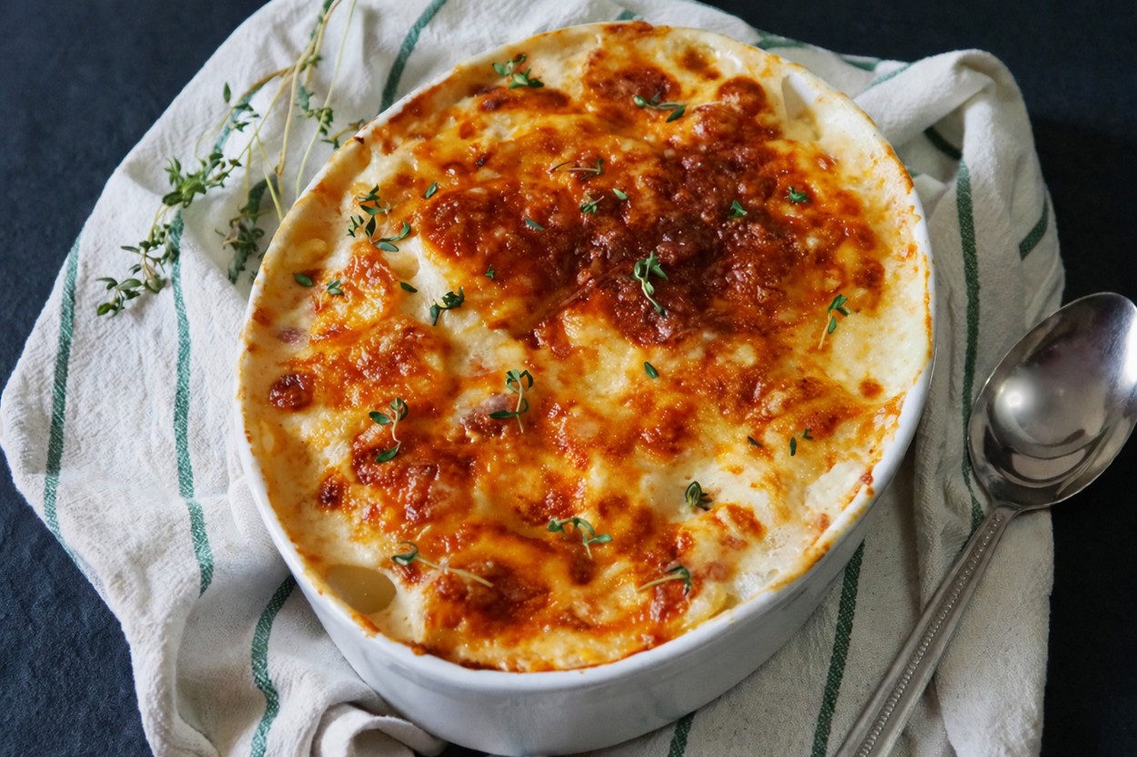 Bunun farkında olan Fransızlar ise sonsuz sayıda farklı patates tarifi ve uygulamasıyla, her yemeğin yanına yakışabilecek bir patates tarifi bulmuşlar. Bunların içinde bizim damak tadımıza en çok uyan, üstelik yapılışı oldukça kolay olan klasik bir Fransız tarifimiz var. Hem krema hem de sütle birlikte pişen incecik patatesler, üzerinde nar gibi kızaran peyniriyle harika bir uyum sergiliyor.