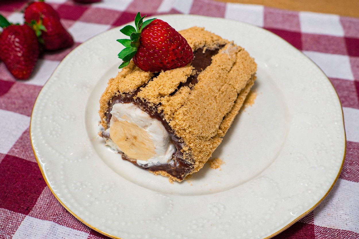 Muhallebinin buzdolabında dinlenip, yeterince soğumasına özen gösterin. Aksi takdirde kıvamı tutmayacak ve sarması zor olacaktır. Kullandığınız muz boyutu çok büyükse, ortadan diklemesine ikiye keserek kullanabilirsiniz.