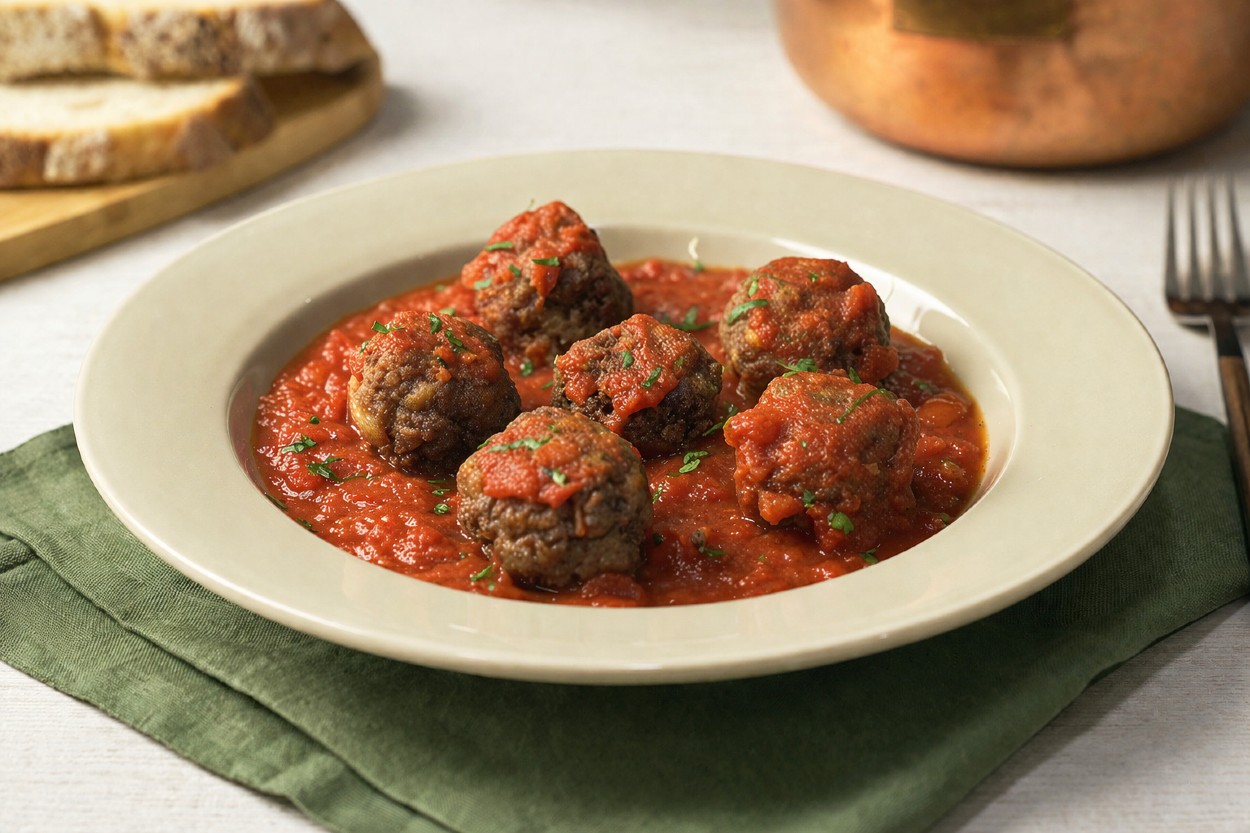 Tabağın tabanına domates sosu, üzerine köfteleri yerleştirin. Arzuya göre üzerine kıyılmış maydanoz serpin. Meksika köftesi hazır. Afiyet olsun!