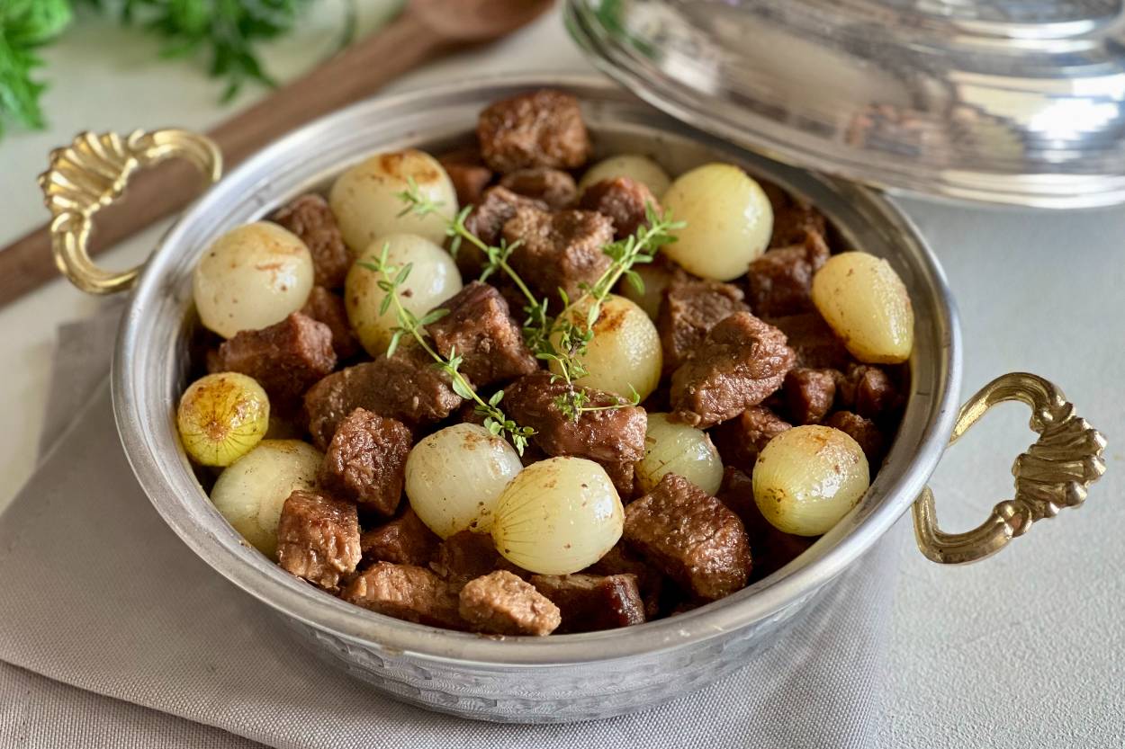 Kısık ateşte bol soğanla pişiyor etler. Ardından unla kavrulmuş, bol patlıcanlı bir sosla buluşuyor. Kendimizi hünkar gibi hissetmek işte bu denli pratik. O beğendiyse biz de bayıldık.