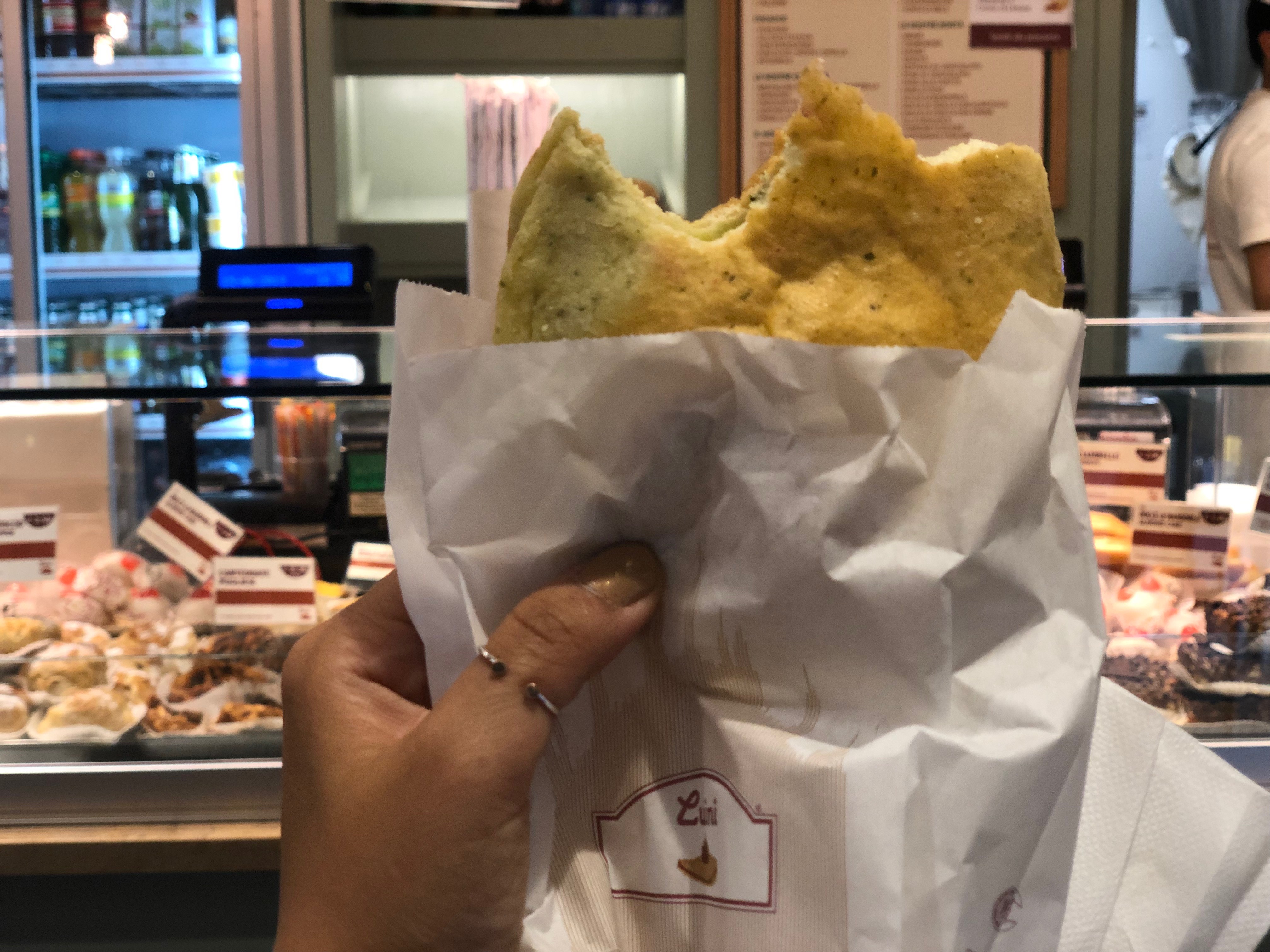 Burası Duomo Katedrali'ne 5 dakika mesafede bulunan hamur işleriyle öne çıkan bir yer. Ama asıl İtalyan pişisi olarak anılan "Panzerotti" ile meşhur. Tatlı ve tuzlu seçenekleri var. Kızarmış panzerotti'yi günün her öğünü atıştırmalık olarak tüketebilirsiniz. Mozzarella ve domates soslu, ıspanak - ricotta peynirlisi oldukça meşhur. Fiyatları da 2 euro civarı. Burayı gelmeden önce birçok yerde tavsiye olarak görünce ben de denemeye karar verdim. Ispanaklı ricotta'lı kızarmış panzerotti yedim ve ne yalan söyleyeyim sevmedim. Oldukça kalın bir hamurun içine ıspanak ve peynir koyulup kızartılmış. Kızartılmış olduğu için ağırdı ve içeriği tatsız tuzsuz ve azdı. Belki başka seçeneklere fırsat vermek gerekebilir.