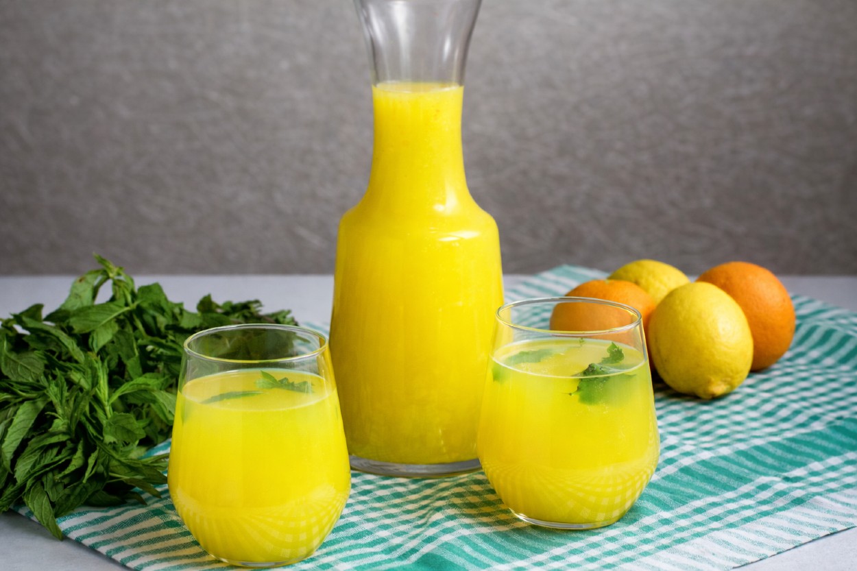 İşin sırrı 1 portakal ve 2 limonda saklı. Üstelik bu ölçülerden tam tamına 3 litre limonata çıkıyor. Tek seferde bol bol yapmış olacağınız için dilediğiniz kadar ve dilediğiniz zaman tüketebilirsiniz siz onu. Şimdiden ellerinize sağlık diyor, hem ekonomik hem de lezzeti tam kıvamında 1 portakal 2 limondan limonata tarifimize buyur ediyoruz!