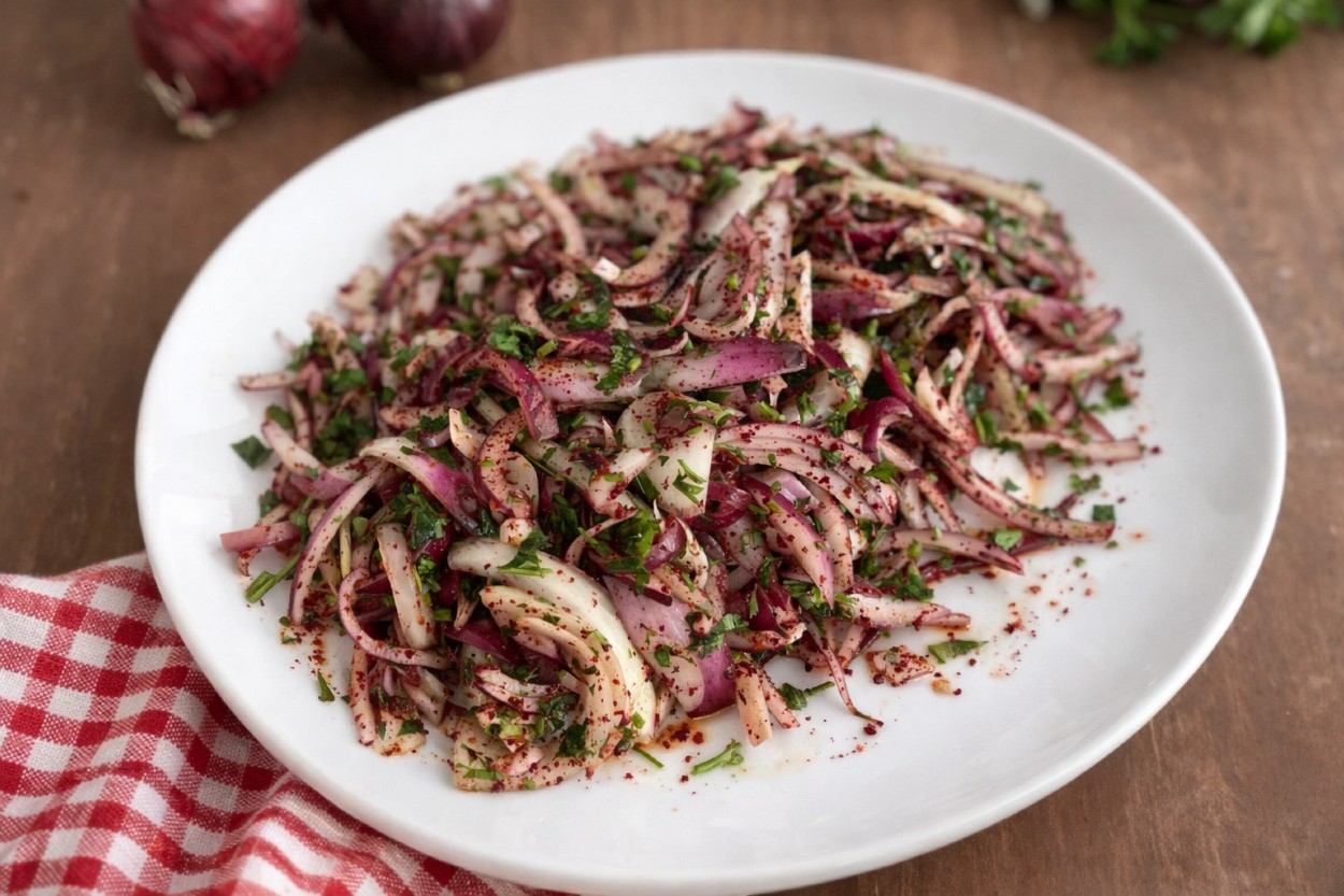 Kebap yanına çok yakışan, kebapçı salatası olarak da bilinen Adana usulü soğan salatası yapıyoruz. Bol soğanlı, acılı bu salatayı hazırlamak çok pratik.