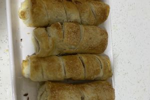 - Ardından milföylerin ortasına çikolatadan koyup rulo şeklinde kapatın.