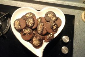 Çikolata, kakao ve Antep fıstığının önderliğinde, önce görüntüsüyle kalbinizi çalacak bir kurabiyeyle tanıştıracağız sizi. Pastanelerde görmeye alışkın olduğumuz bir ucu çikolata bulanmış kurabiyeleri evimizin mutfağına taşıyoruz bugün. Kendileri size ilk ısırıkta aşk yaşatacak ve tabiri caizse damak çatlatacak.
