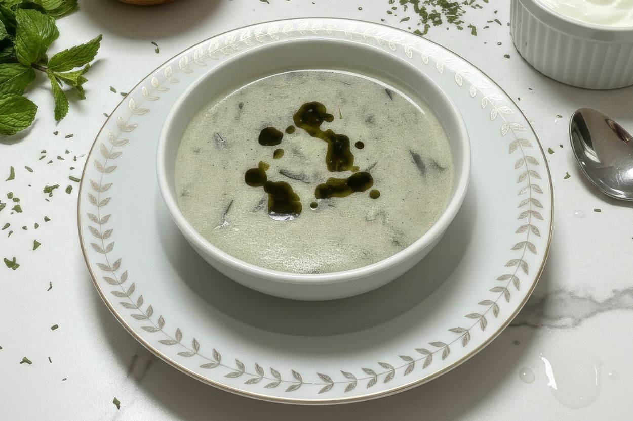 - Süzme yoğurdun içine yumurta ve un eklenerek çırpılır. Ardından koyu ayran kıvamına gelene kadar azar azar su eklenir ve çırpmaya devam edilir. Böylece yemeğin sosu hazırlanmış olur.