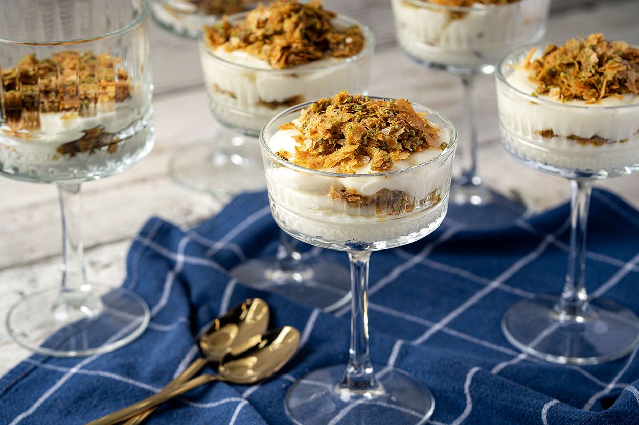 Baklavalı muhallebi, klasik şerbetli baklava dokusu ile sütlü tatlıların hafifliğini bir araya getiren modern bir tatlı. Hızlı hazırlanan ama sunumu görkemli tatlı tarifleri arayanlar için birebir.