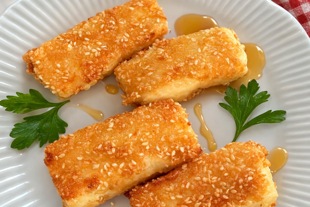 - Tavaya yağı döküp her tarafı altın rengine dönene kadar kızartın. Tabağa aldığınız peynirin üzerine bal gezdirin.