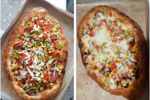 - Ardından malzemelerini pidenin üzerine dizerek fırına verin.