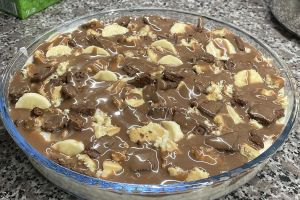 Çikolatalı tatlı sevenlerin bayılacağı bisküvili kaşık tatlısı, bisküvili muzlu tabanı, nefis kreması ve çikolatalı sosuyla tatlı krizleri için birebir.