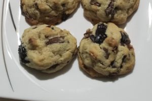 - En son çikolatalar eklenip karıştırılır. (Ceviz istemiyorsanız çikolatayı iki su bardağı yapın, çünkü kurabiyede yeteri kadar ağırlık olmazsa yayılacaktır.)