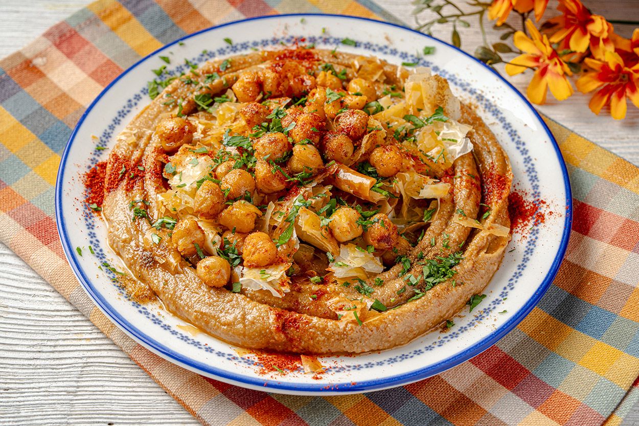 Tahinle limonun dengeli ekşiliği, sarımsağın keskin aromasıyla bir arada diyebiliriz. Üzerine serpilen çıtır yufkalar ve baharatlı nohutlar ise her lokmada damakta sürpriz bırakıyor. Fırından çıkan yufkanın kokusu mutfağı saracak.