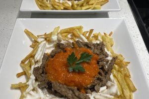 "Bodrum Kebabı" da denen çökertme kebabının alt katında yer alan çıtır patates kızartması hatta arzuya göre eklenen pide parçaları, domates sos, çırpılmış yoğurt ve et dilimleri... Oy oy oyyy! Ağızlar sulanmaya başladıysa mutfağa doğru yol almalı yavaştan.