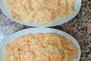 - Havuçların kabuğunu soyup uzun olacak şekilde rendeleyelim. Karıştırma kabına alalım.