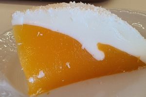 Sunumu ile çocukları ve misafirleri çok şaşırtacak bir tarifimiz var! İçi portakal ve mandalina ile tatlandırılmış, dışı ise mis kokulu, vanilyalı muhallebi olan, Hindistan cevizi ile kaplanmış, dev bir tatlı düşünün... Dilimlendiğinde sürprizi ortaya çıkıyor, tattığınızda ise ferah bir sütlü, meyveli tatlı deneyimi sunuyor!