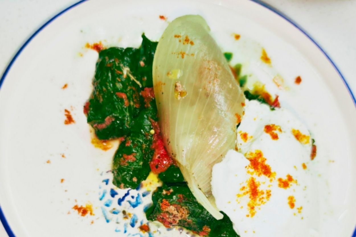 - Tencereye dizilen dolmaların üzerine domates sosu, sumak ve zeytinyağı ile birlikte çok az su ilave edip 25 dakika pişiriyoruz. Yoğurt ve kırmızı toz biber ile servis edebilirsiniz. Etli pazı ve soğan dolması hazır! Afiyet olsun.