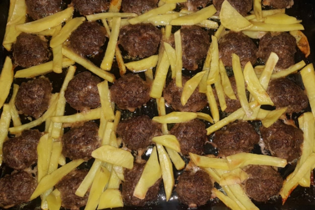 - Sonrasında köftelerimizi yuvarlayıp pişireceğimiz tepsiye güzelce yerleştirelim (dilerseniz köftelerin yanına patates eklemesi yapabilirsiniz).