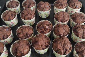 - Cupcake kalıbını yağlayın. Harcı eşit miktarda pay edin. Üstlerine tekrar fındık ekleyin. 180 derecede 30 dakika pişirin.