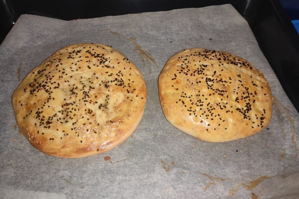 - Fırından çıkan ekmekleri biraz dinlendirdikten sonra servis edin. Fırında susamlı pide hazır! Afiyet olsun.