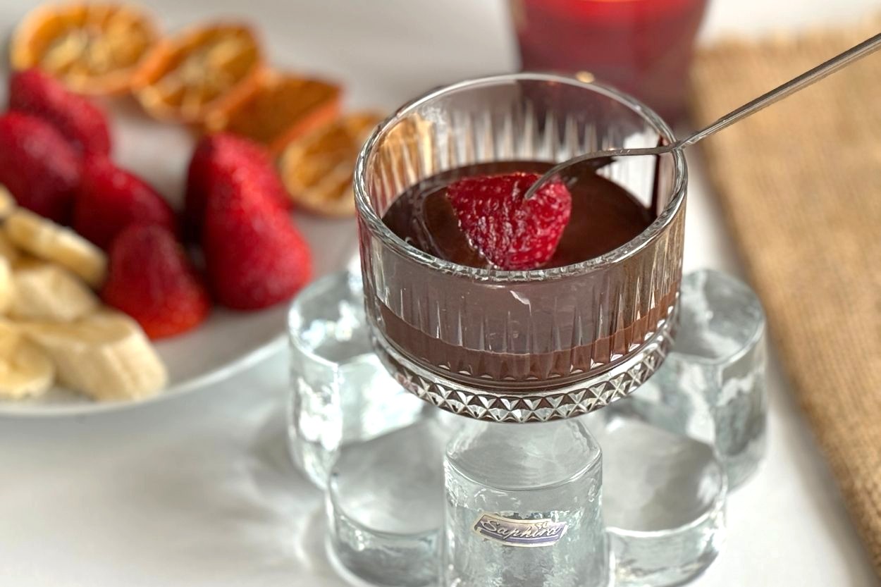Çikolata fondüsü, pek çok fondü çeşitleri arasında olan bir atıştırmalık türü. Ortasında mum yanan fondü aletleri ile masanın tam merkezinde, ağır ağır eriyen çikolatalar; meyvelere bandırılarak hazırlanıyor.