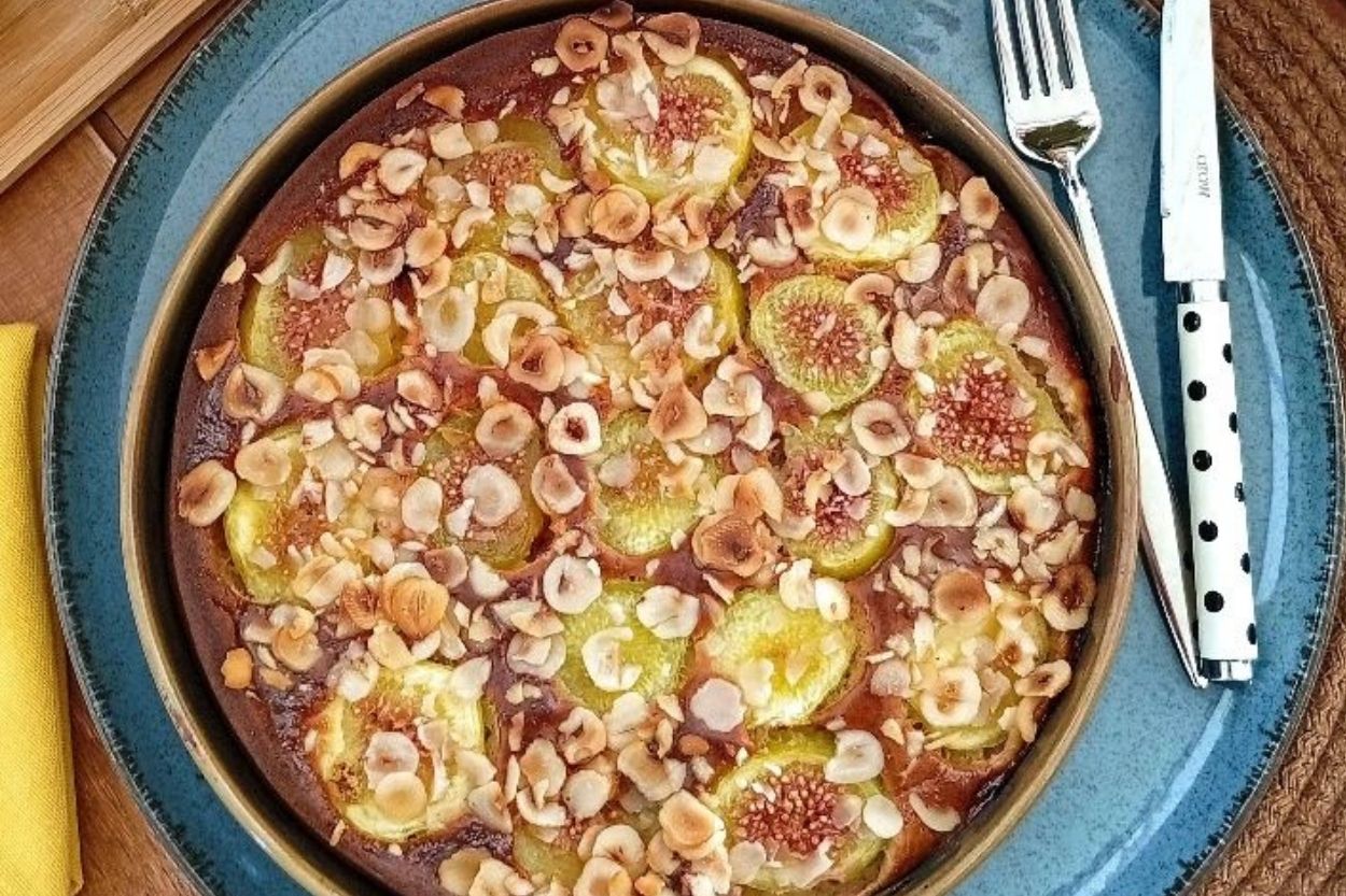 - Orijinal tarifte meyveler fırın tepsisinin altına koyularak üstüne hamur dökülür; o şekilde denediğimde meyveler suyunu bırakıyor. O yüzden ben fırın kabına önce hamuru, üstüne dilimlenmiş incirleri yerleştiriyorum. Fındık içlerini döküyorum.