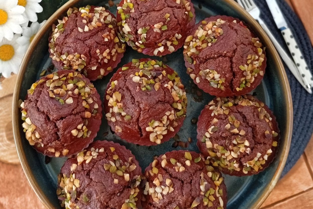 - Silikon muffin kaplarına dökün. Üstüne benim gibi fındık, Antep fıstığı, ceviz, file badem de koyabilirsiniz isterseniz.
