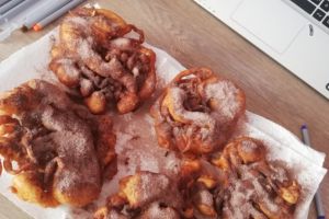 Orijinal adı ''Funnel Cake'' olan tatlımız Kuzey Amerika’da popüler olan ve aslında mayasız hazırlanan bir donut türüdür. Un, süt, yumurta ve az miktarda şekerle hazırlanan hamurun bir huni yardımıyla kızgın yağın içerisine dairesel hareketlerle aktarılarak kızartılmasıyla hazırlanır. Bu yüzden de huni kek ismini almıştır.