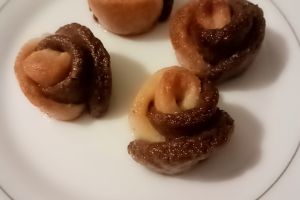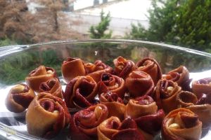 Güle benzeyen şekli ile zahmetli gözükmesine rağmen oldukça pratik olan bu tarif şipşak hazırlanıyor. Fırında misler gibi pişerken, tencerede de şerbeti hazırlanıyor ve şerbet soğuduktan sonra o müthiş buluşma yaşanıyor. Ortasına konulan bütün fındık da adeta son noktayı koyuyor, bize de tadını çıkarmak düşüyor