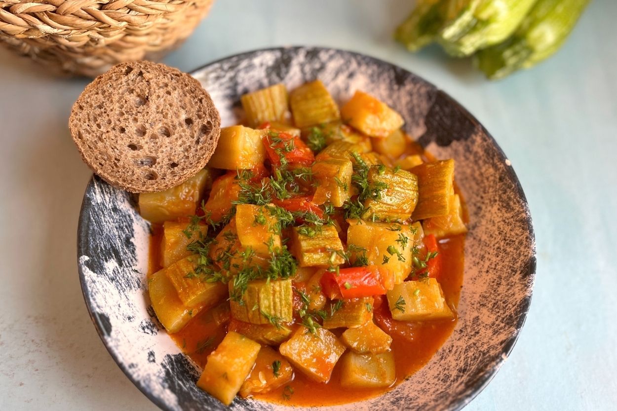 Kabak bastı, geleneksel Türk yemeği kültürünün en sade sebze yemeklerinden. Taze kabaklar, soğan, domates, biber ve zeytinyağı ile "basılarak" (kısık ateşte, kapağı kapalı) pişirilmesiyle hazırlanıyor. Etsiz ana yemek olarak en sevilen sebze yemeği tarifi olabilir. Doğal yapısı gereği vegan yemek tarifi arayanlar için de seçenek.