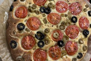 İtalya'nın her yerinde sevilerek tüketin ekmeklerden birisi olan focaccia, her bölgede kendine özgü malzemelerle hazırlanarak tüketiliyor. Bu kez Güney İtalya'da bulunan Puglia bölgesine özgü bir tarifi sizler için kendi dokunuşlarımızı ekleyerek hazırladık. Evde bulunan malzemelerle tamamlayabileceğiniz, domates yerine soğan, mantar, pastırma, peynir gibi malzemeler ekleyebileceğinzi bir focaccia bu. Hatta dilerseniz üzerine hiç malzeme koymadan sade focaccia olarak da pişirebilir, sadece zeytinyağı sürerek servis edebilirisiniz.
