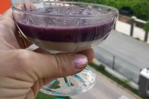 - Son olarak bardaklarımızın yarısına sütlü muhallebimizi kalan kısmını da karadutlu muhallebimizi ekleyerek soğumaya bırakıyoruz.
