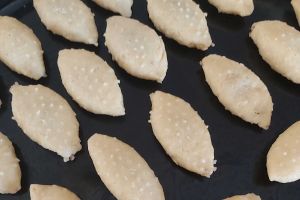 - Ben ceviz büyüklüğünde parça koparıp silikon nihalenin üzerinde açtım, içine ceviz koyup kenarlarından kapatıp ters çevirdim. Tüm hamur bitene kadar böyle devem edin.
