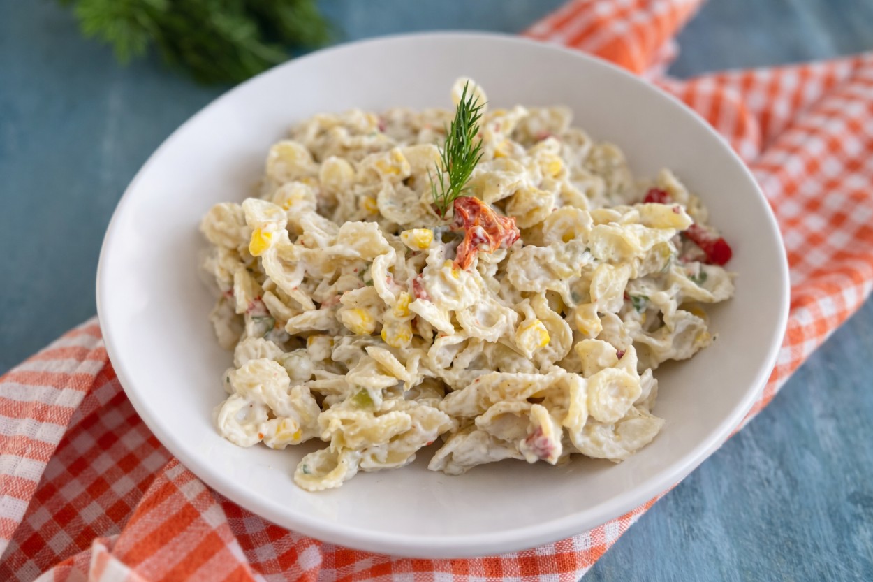 Kapya biber, turşu, mısırla zenginleşen közlü makarna salatasını denedikten sonra artık onu hep bu şekilde yapmak isteyeceksiniz.