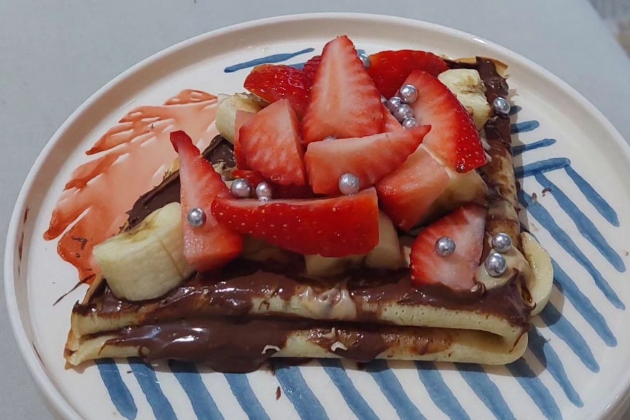 - Tekrar katladığımız kreplerin üzerine son kez çikolata sürelim ve taze meyvelerle süsleyelim.