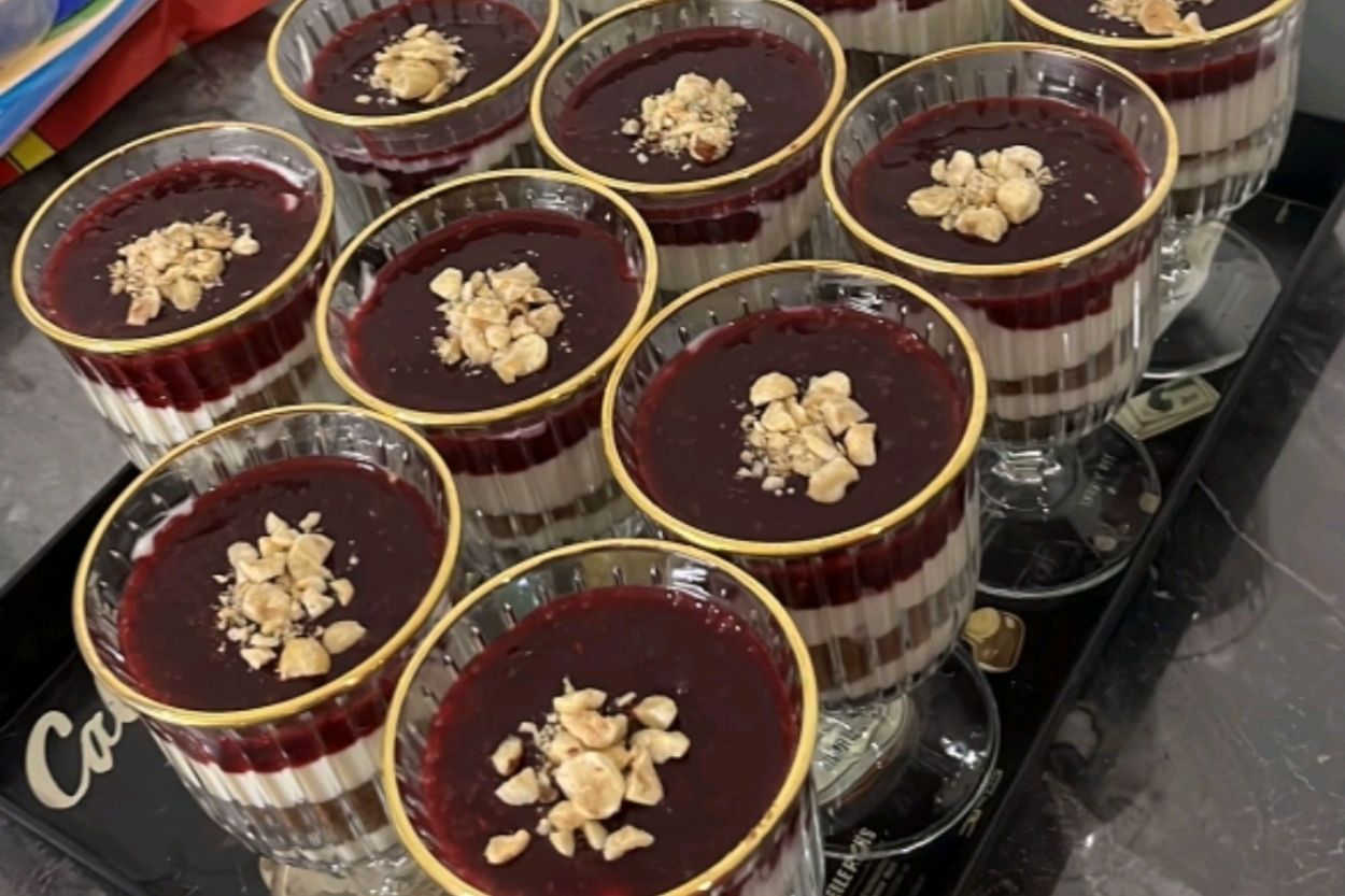 - Kuplarda kabuk bağlamış beyaz muhallebilerimin üzerine, mor pelteyi bir kepçe yardımıyla çok dikkatlice döküyorum. Tatlılarım oda sıcaklığına geldikten sonra buzdolabında iyice soğutuyorum. Kupta pepeçura tatlısı hazır. Afiyet olsun.