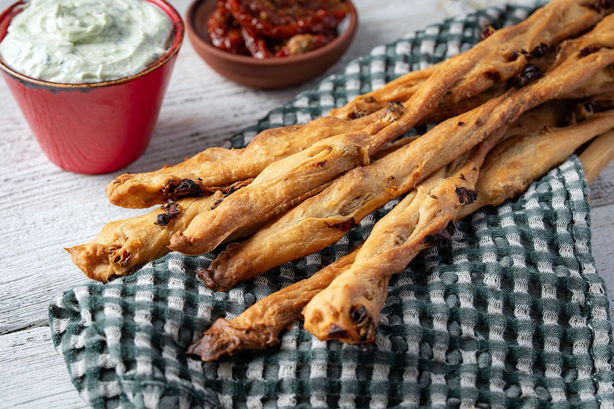 Kuru domatesli galeta, İtalyan mutfağının sevilen atıştırmalıklarından grissini tarifinin domateslerle harmanlanmasıyla elde edilen, fırınlanmış çıtır bir tuzlu atıştırmalık çeşidi. Akdeniz diyetinde ve mutfak kültüründe sıkça yer bulan zeytinyağlı, hafif baharatlı yapısıyla enfes bir lezzet.