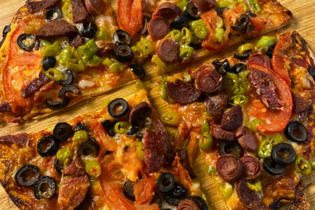 - Üzeri kızarıp malzemeleri piştikten sonra fırından çıkararak dilimleyip servis edelim. Lavaştan kolay pizza hazır! Afiyet olsun.