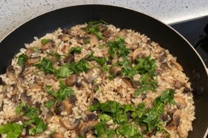 Fasulye diblesinden ilham alıyor ve mantarı bol soğan, az pirinçle pişiriyoruz. Öyle güzel öyle lezzetli oluyor ki bir tabak yetmiyor! Ana yemek olarak tüketmenin yanı sıra et yemeklerinin yanına farklı bir eşlikçi olarak da sunabilirsiniz.