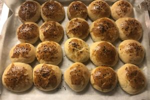 - Yağlı kağıt serili tepsiye dizip yumurta sarısı ve çörek otu serpiyoruz.