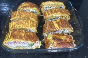 Dışı unsuz, sağlıklı bir mücver, içinde ise haşlanmış tavuk, labne, roka gibi malzemeler var. Farklı ve doyurucu olduğu kadar da masum.