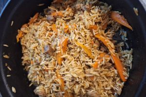 Özbek pilavı (yerel adıyla Palov ya da Plov), Orta Asya mutfaklarının en bilinen ve en sevilen yemeklerinden. Et (genellikle kuzu), havuç, soğan ve pirincin özel bir teknikle pişirilmesiyle yapılan geleneksel bir pilav. Bu tarifin olmazsa olmazı bolca sarımsak, et ve havuç.