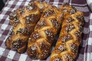 - Fırını 180 dereceye ısıtmaya başlayın. Mayalanma sonrası herbir bezeyi eliniz ile ortadan dışa doğru hafifçe bastırarak silindir şeklinde uzatın. Hepsi aynı boyda olsun.