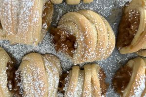 Pastanelerin vitrinlerinde gördüğümüz o nefis elmalı kurabiyeleri evde yapmak bu tarif ile çok kolay! Kurabiye hamurunu ve elmalı iç harcını hazırladıktan sonra şekil vermeye başlıyoruz. Şekliyle misafirlerinizi şaşırtacak kurabiyeleriniz fırında pişerken çaylar demlensin.