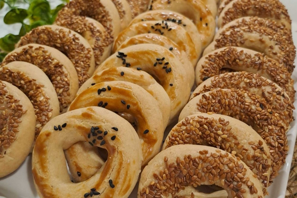 - Hamurdan ceviz büyüklüğünde parçalar koparıp simit şeklini verin. Önce yumurta beyazına daha sonra susama bulayın ve tepsiye dizin.