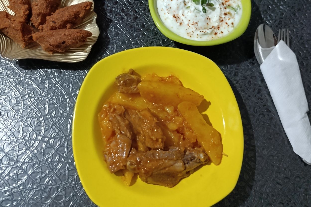 - Tencerenin kapağını kapatıp kısık ateşte patatesler yumuşayana kadar pişirelim. Patatesli köy tavuğu hazır! Afiyet olsun.