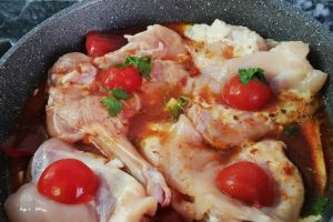 - Tencerenin en üstüne dinlendirdiğimiz tavuk pirzolaları da yerleştirelim.