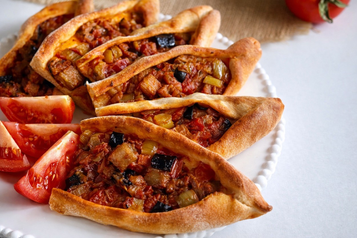 Patlıcan yemekleri sevenler için bu pide, güvenli bir lezzet durağı olacak, buna eminiz. Üstelik doğru pide hamuru yapımı ile, dışı hafif çıtır, içi yumuşak olacak. Afiyetle...