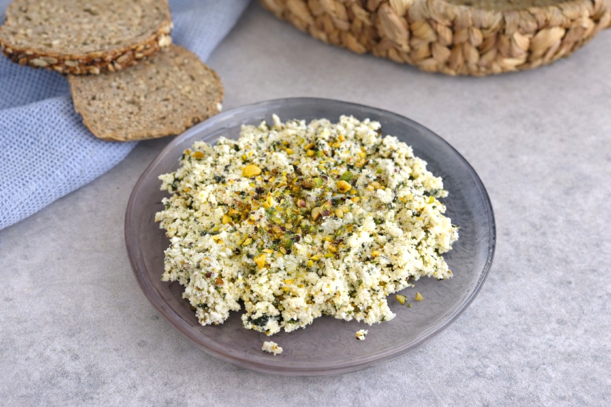 Ezilmiş sarımsağı, kekiği, cevizi ve antep fıstığını ekleyin. Hazırladığınız fesleğen sosunu peynirlerin içine ekleyin.