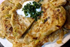 İki kişi olduğumuz için yarım ölçü yaptım, pırasanın yeşil yerlerini de kullandım biraz. Hamuru dörde böldüm. Eşim de ben de beğendik. İlk gördüğümden beri aklımdaydı sonunda yaptım!