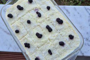 - Yağlanmış borcama karışımı dökün. Önceden ısıtılmış 170 derecelik fırında 35-40 dakika pişirin.